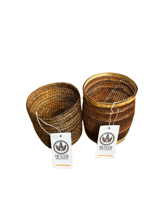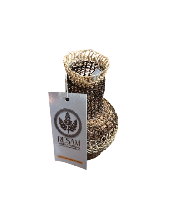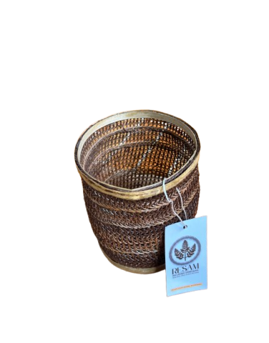 Vas bunga dari resam ini menghadirkan nuansa alami dan hangat pada ruangan Anda. Terbuat dari anyaman resam pilihan dengan pengerjaan rapi, vas ini menampilkan tekstur unik yang estetis dan bernilai seni tinggi.